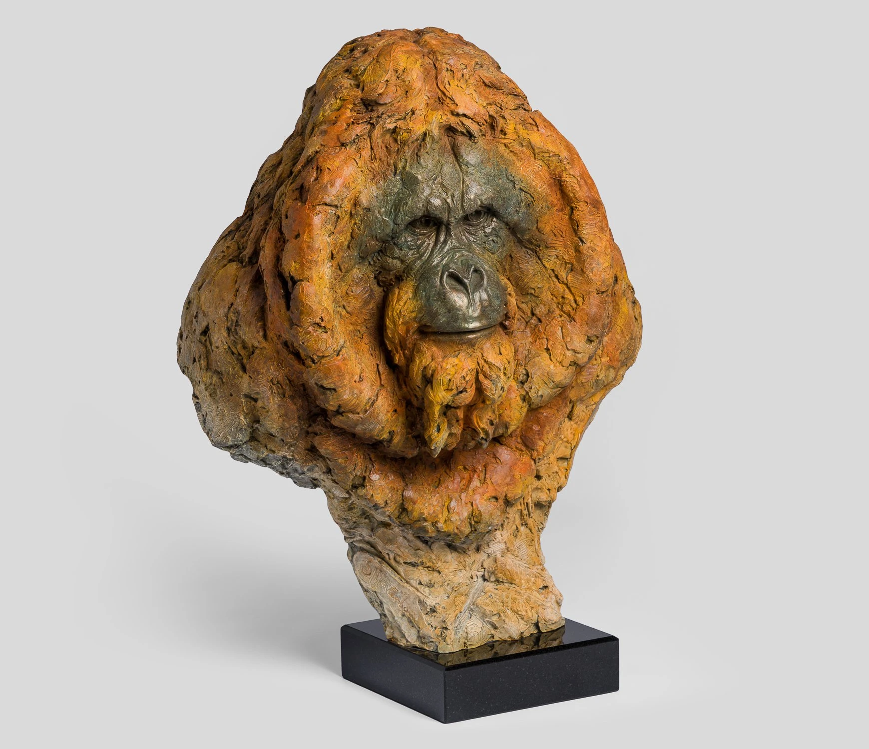 As with all his incredible work, Steve has handled every stage of manufacture of this orangutan sculpture himself all the way through to final patina, and the rich burnt orange and ivory finish that brings the beautiful creature portrayed in ‘Wisdom of the Forest’ alive is a first for Castle Fine Art. This expertly-applied texture is synonymous with Steve’s wildlife sculptures, with the looseness of the style and finish allowing him to express the soul of the animal.