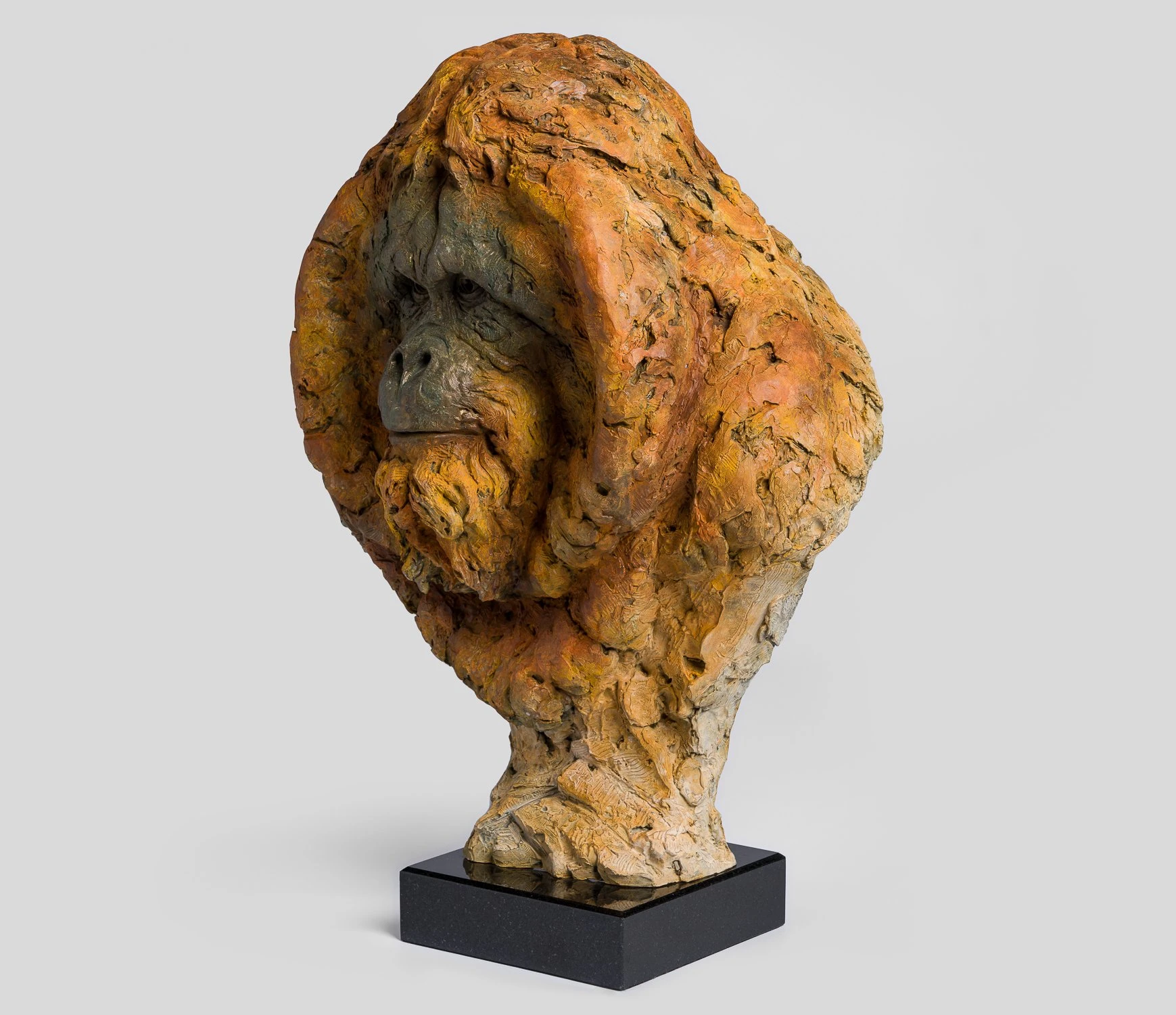 Steve Winterburn has long been interested in saving the orangutan, a species in rapid decline due to the disappearance of its habitats and has spent many years working with charities to save them. This has meant he has been able to travel extensively and have first-hand encounters with some of the magnificent animals he is representing in his sculptures, and he believes that sculpting a creature many would never encounter can trigger a more urgent and visceral response to the problems they are facing.
