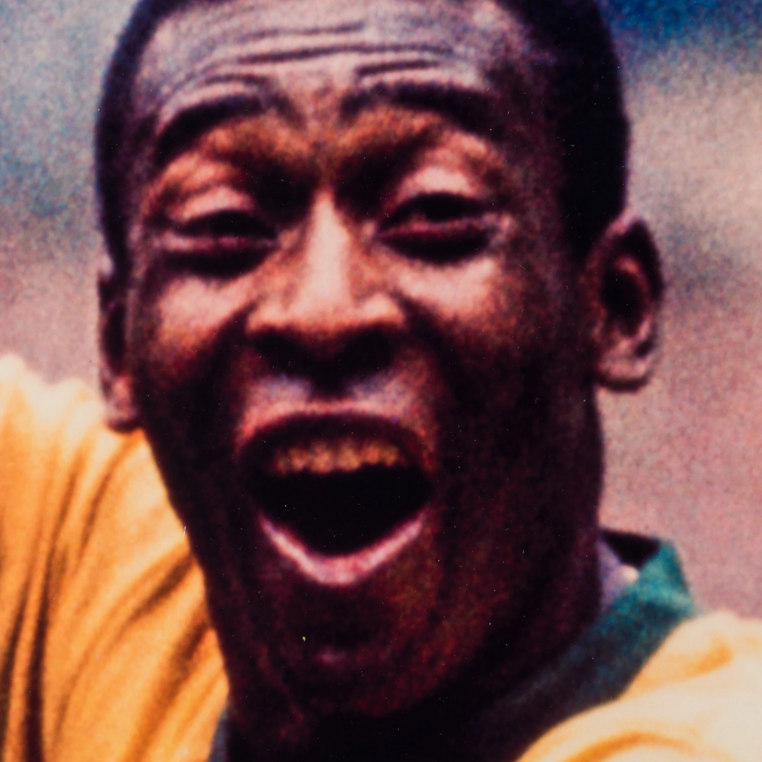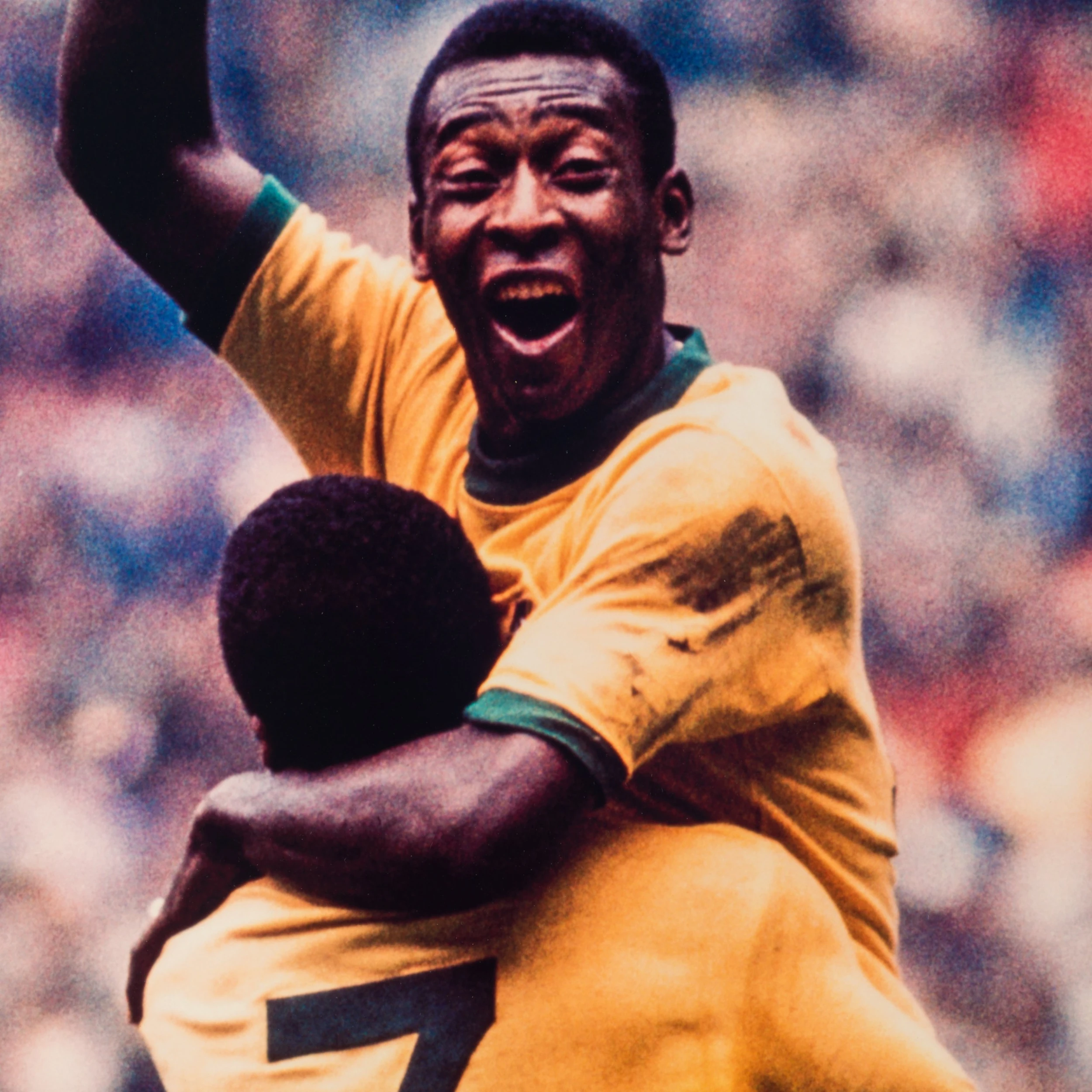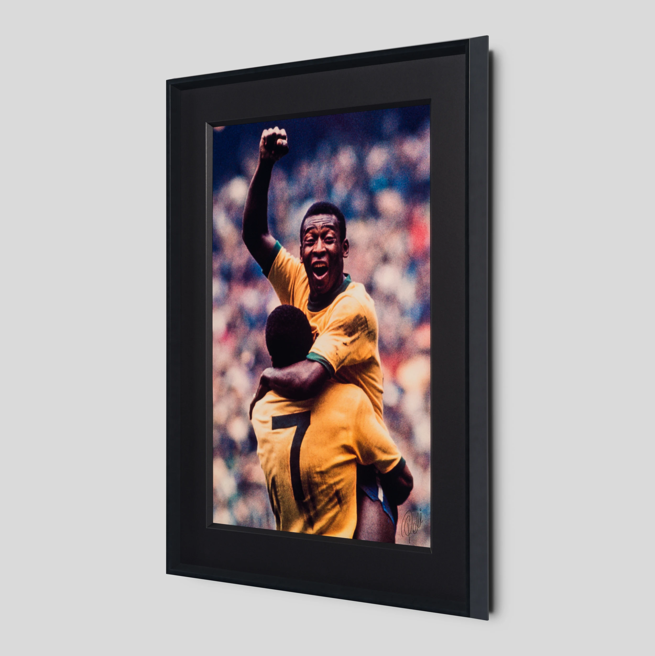Named ‘Football Player of the Century’ by FIFA, Pelé is one of the most celebrated football players in history. The only man to win the World Cup three times, the Brazilian footballer had tremendous vision and an electrifying pace, having set numerous records at international level. Hand-signed by Pelé himself, this captivating photograph captures not only his skills on the field and as a player, but the passion and humility of the man behind the legend, in this case in a celebration for winning the FIFA World Cup in 1970 when Brazil won against Italy.