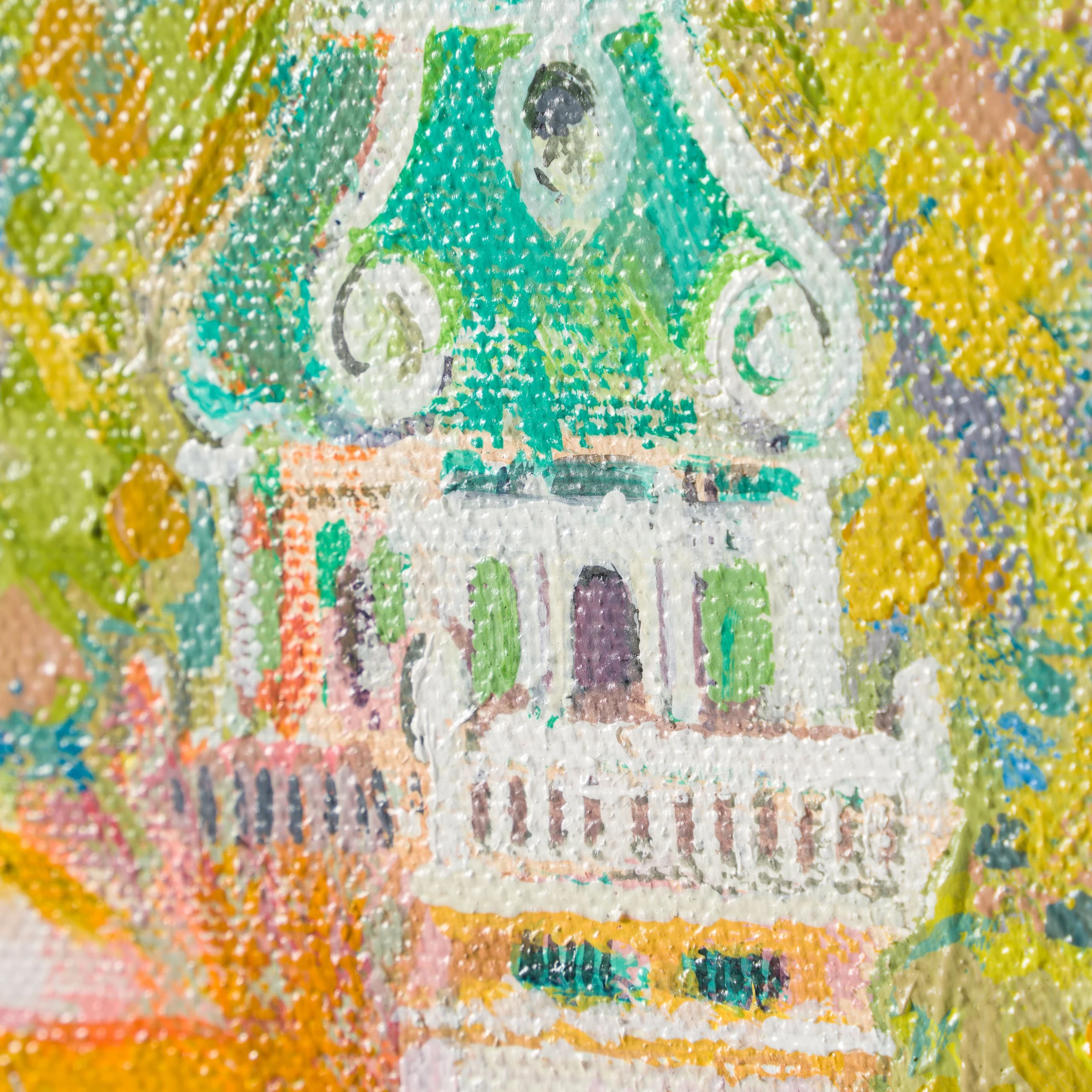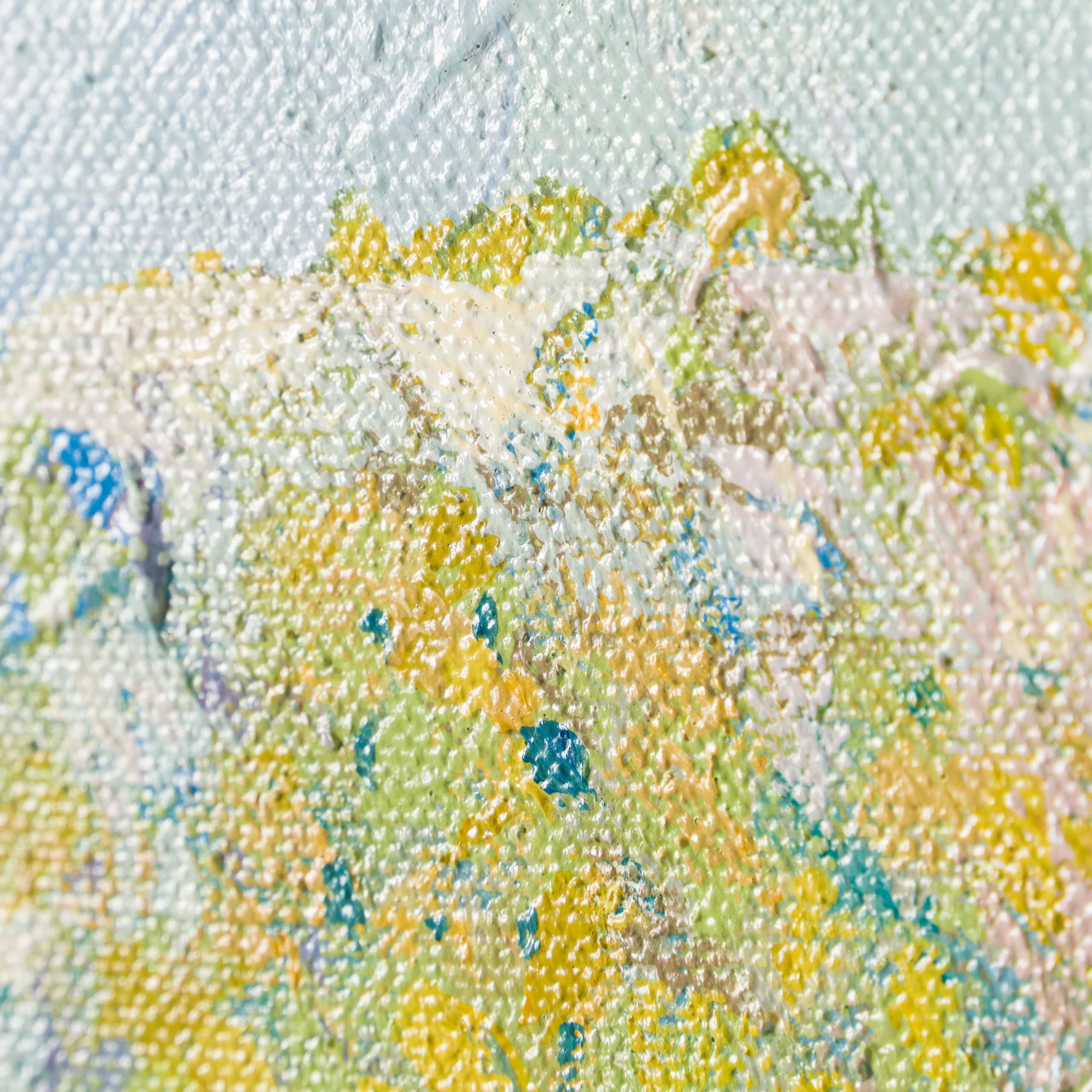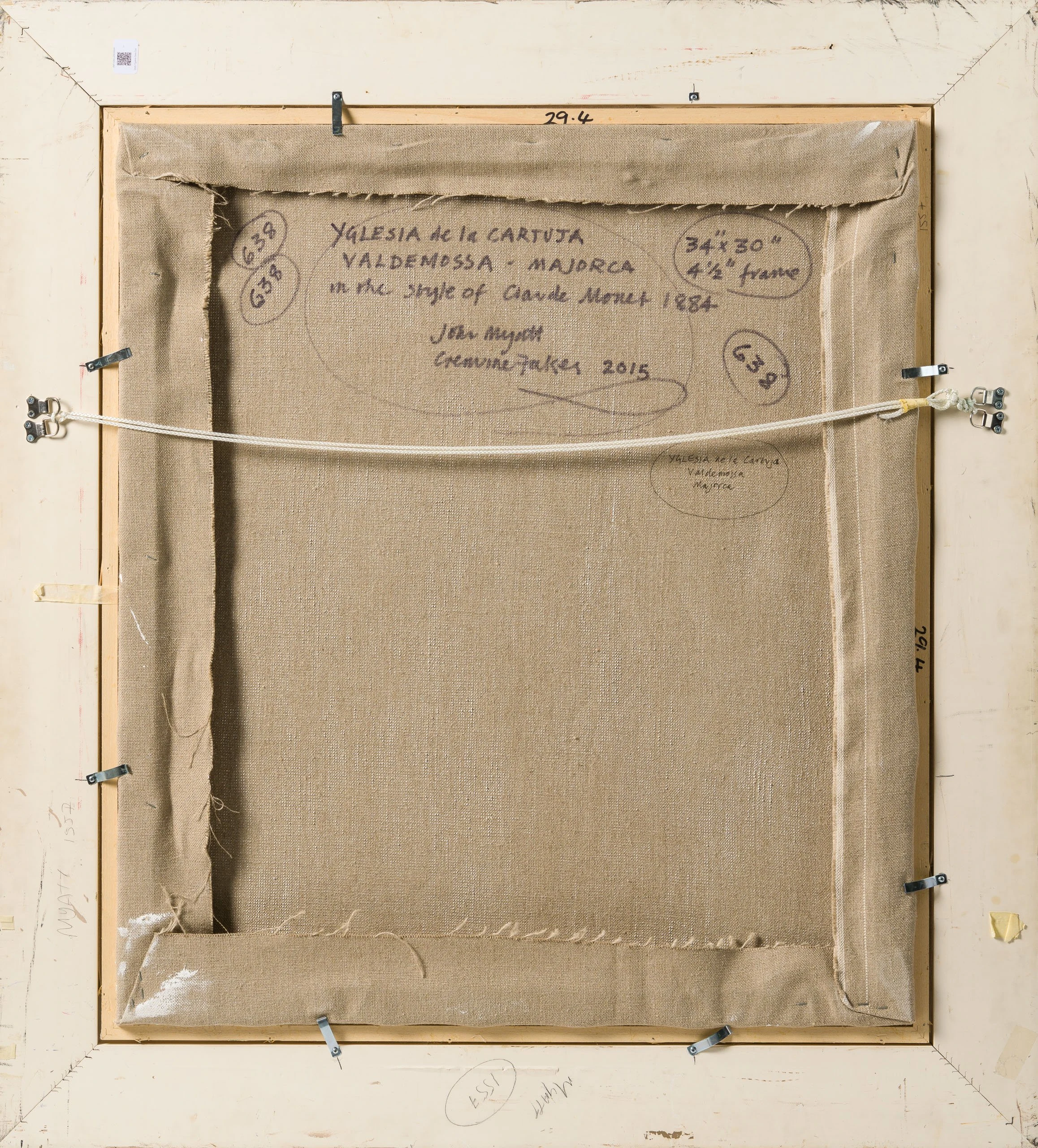 “Yglesia De La Cartuja, Valdemossa Majorca In The Style Of Claude Monet, 1884” features a picturesque landscape of Majorca in a beautiful original by In this simple yet captivating piece, the immensely talented and internationally acclaimed John Myatt draws in inspiration from Monet’s renowned dream-like quality achieved though his complex impressionistic style and vivid colour palette. The game of light and shadow is adorned by the bright vivid colours creating a captivating composition.