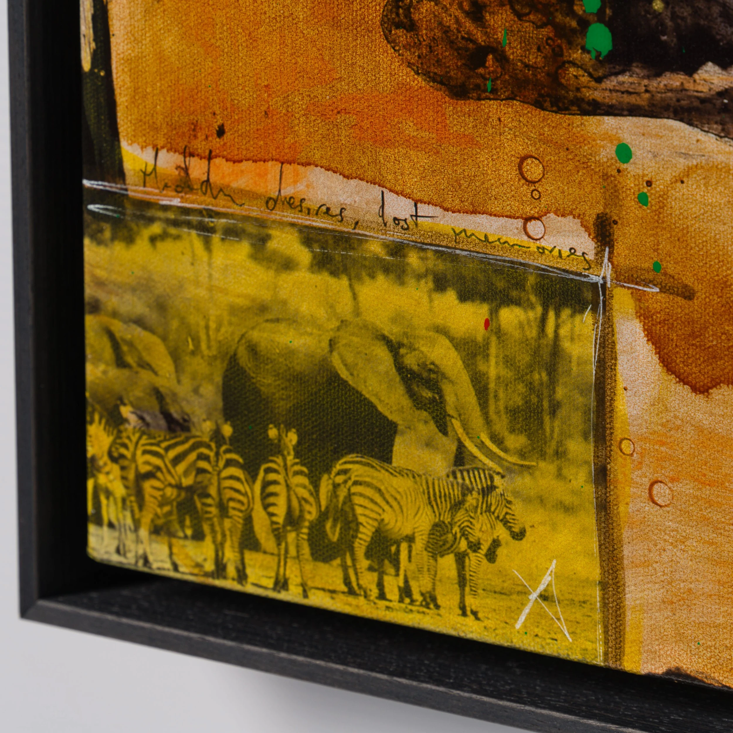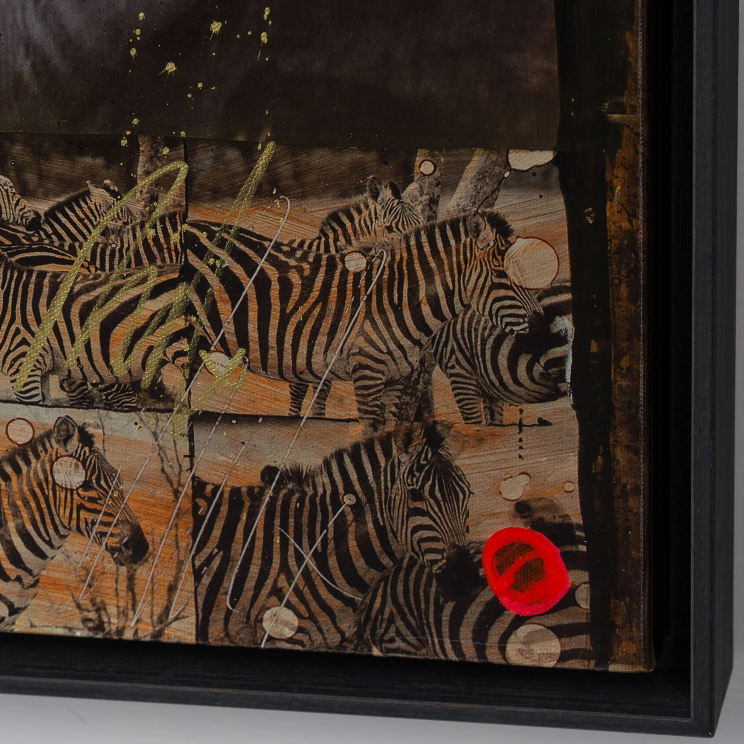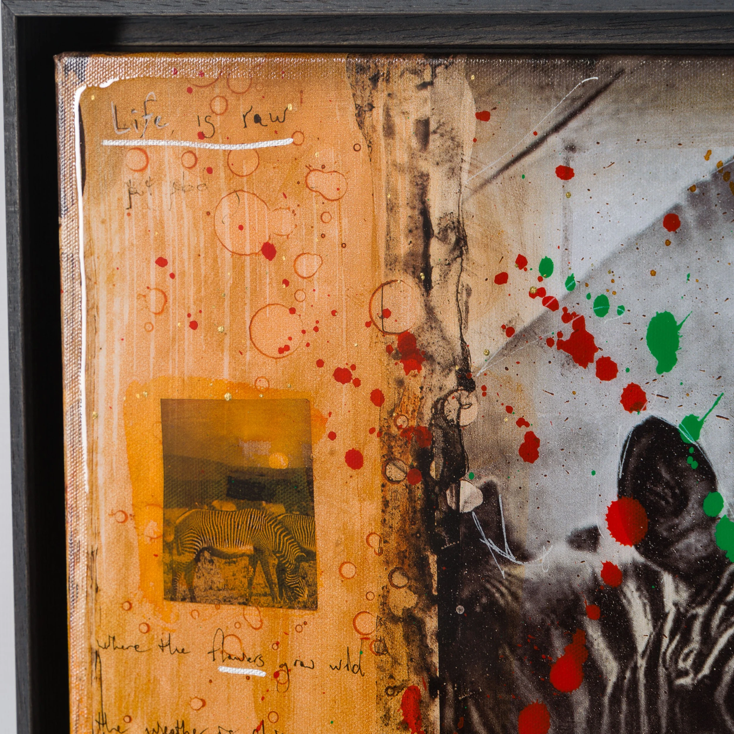 Characterised by the juxtaposition between wildlife and cultural photography, this incredible piece forms part of his introspective collection Grass Roots 2023. Using locally sourced pigments and spices to enhance the monochromatic grasslands of The Maasari Mara, Raphael’s internationally acclaimed photography takes on new life in these artworks with organic and indigenous tones and subjects.